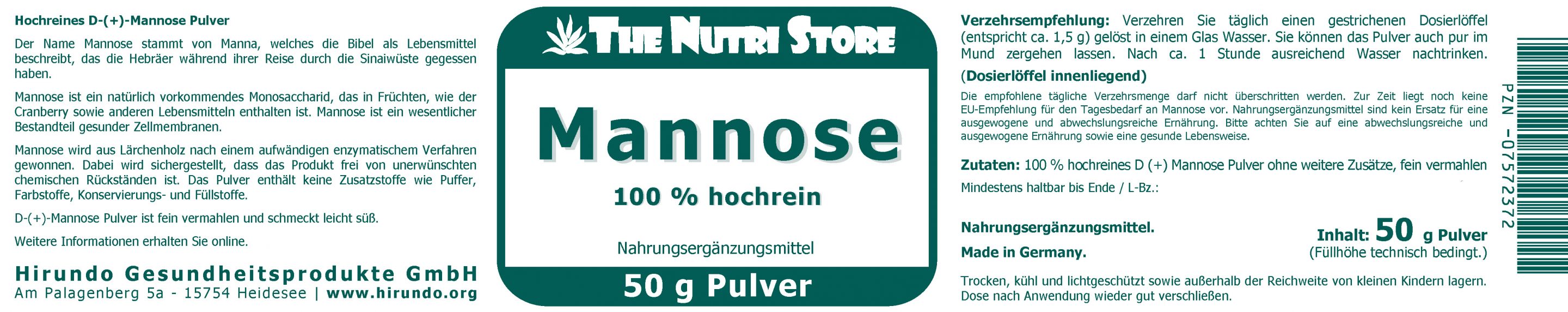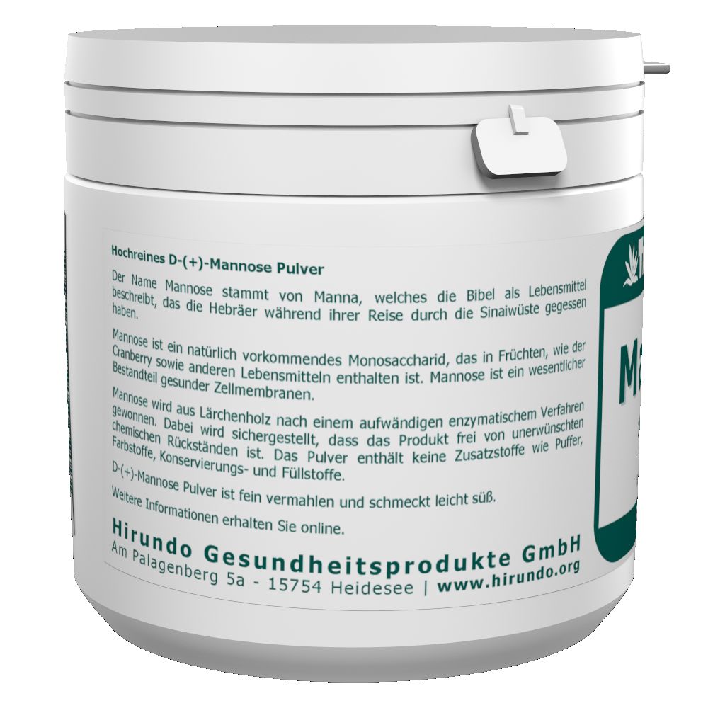 Mannose wird aus Lärchenholz nach einem aufwändigen enzymatischem Verfahren gewonnen. Dabei wird sichergestellt, dass das Produkt frei von unerwünschten chemischen Rückständen ist. Das Pulver enthält keine Zusatzstoffe wie Puffer, Farbstoffe, Konservierungs- und Füllstoffe.