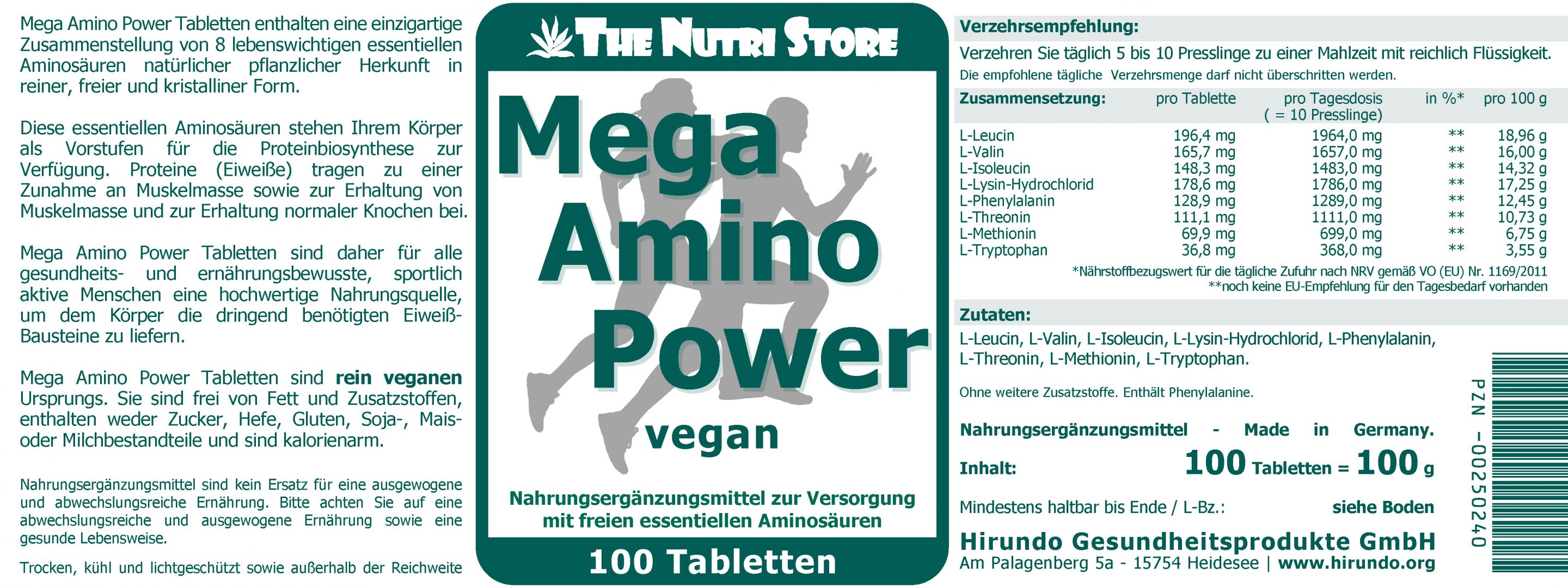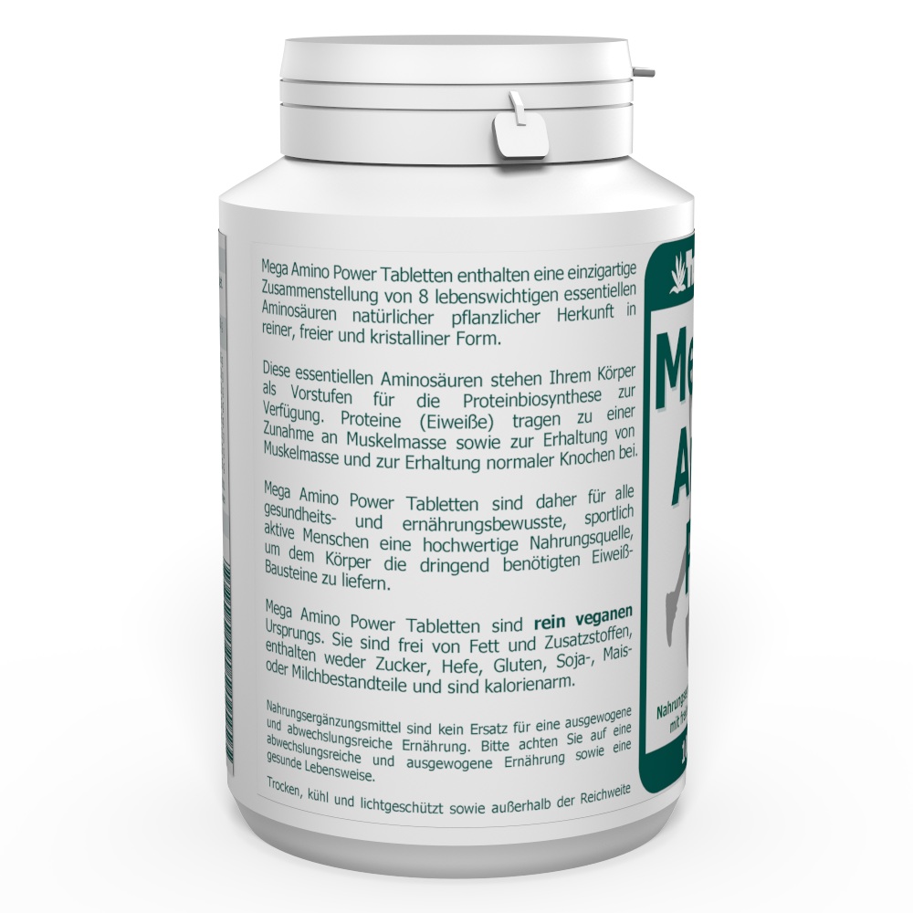 Mega Amino Power Tabletten enthalten eine einzigartige Zusammenstellung von 8 lebenswichtigen essentiellen Aminosäuren natürlicher pflanzlicher Herkunft in reiner, freier und kristalliner Form.
