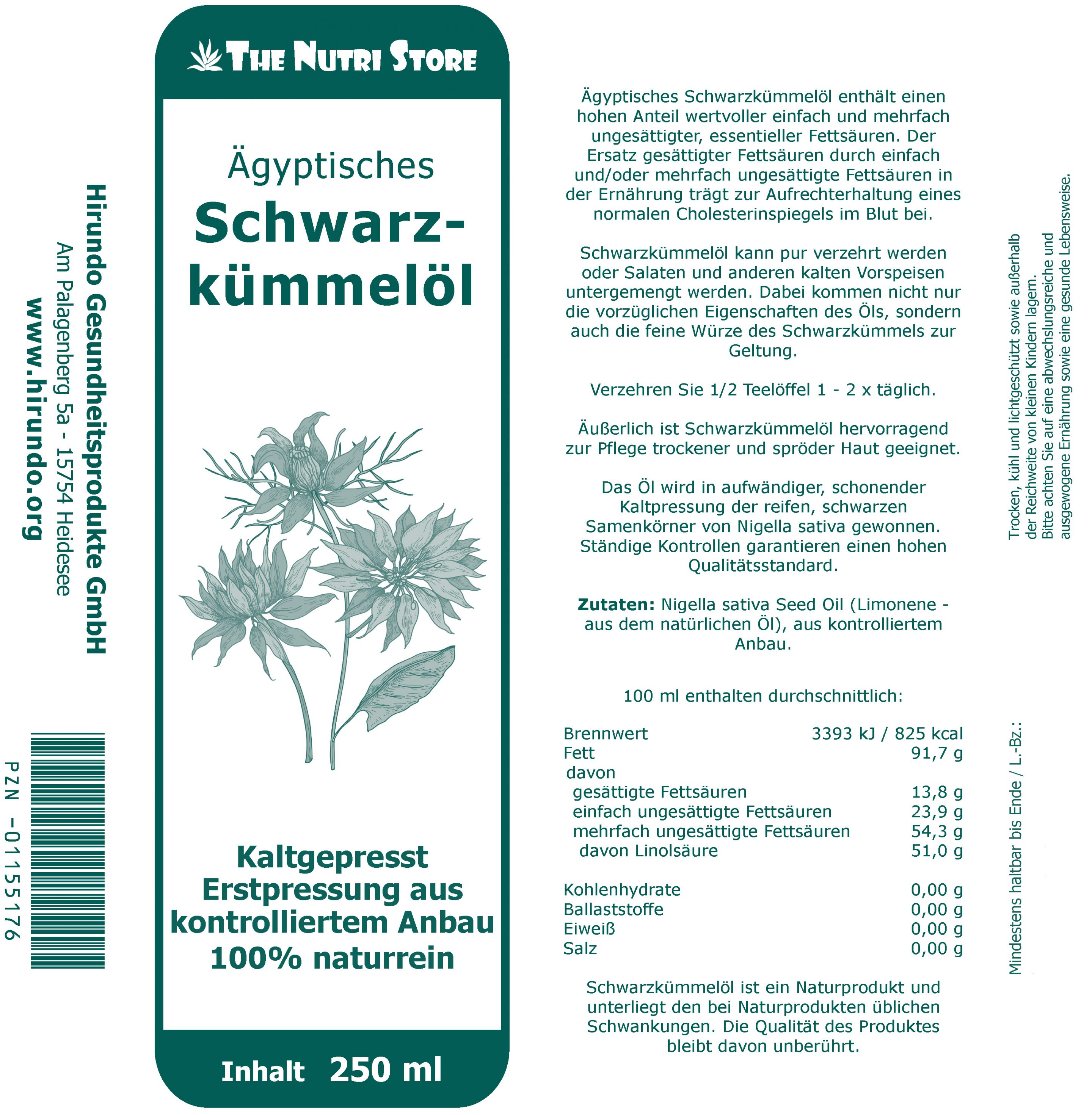 Zutaten: Nigella sativa Seed Oil (Limonene - aus dem natürlichen Öl), aus kontrolliertem Anbau.