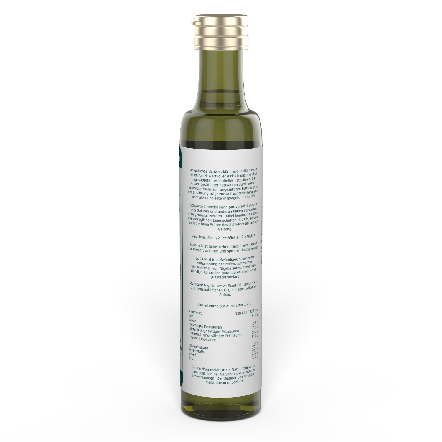 Schwarzkümmelöl ist ein Naturprodukt und unterliegt den bei Naturprodukten üblichen Schwankungen. Die Qualität des Produktes bleibt davon unberührt.